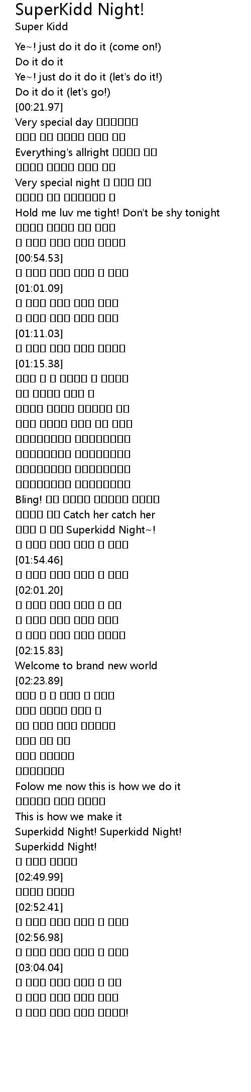 | [01:48.88] | 모든걸 다 가져 Superkidd Night~! |