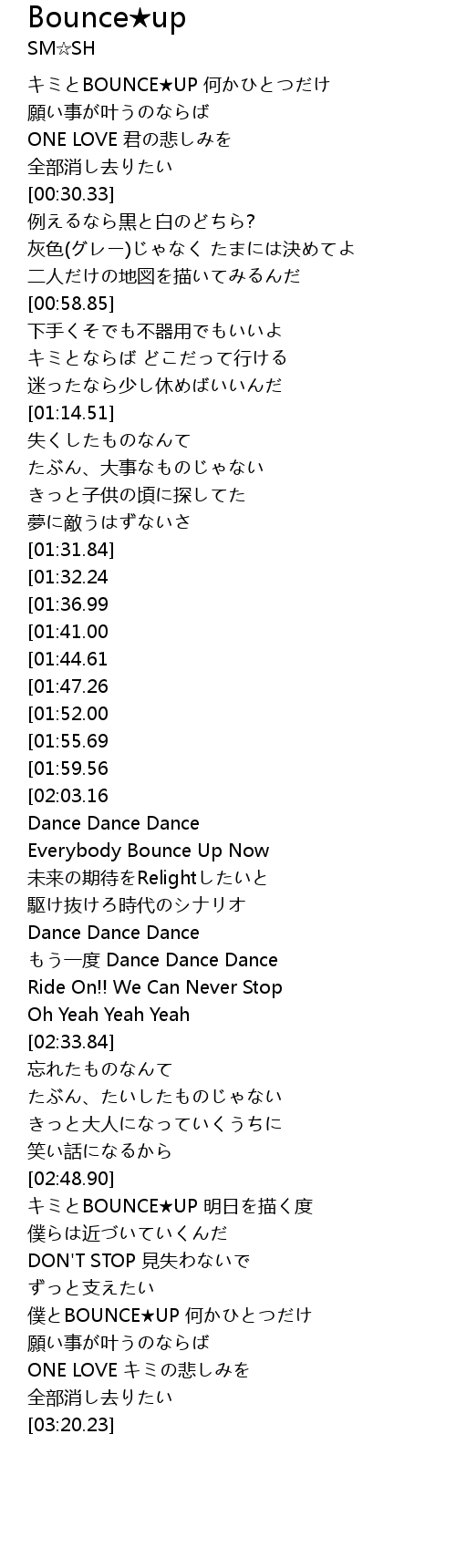 | [03:04.56] | 僕とBOUNCE★UP 何かひとつだけ |