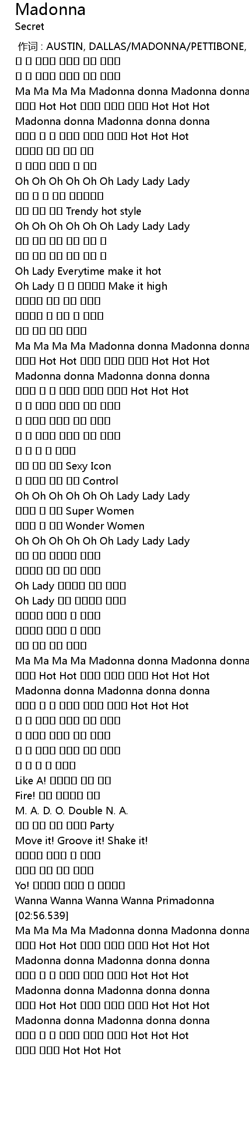 | [02:57.979] | Ma Ma Ma Ma Madonna donna Madonna donna donna |