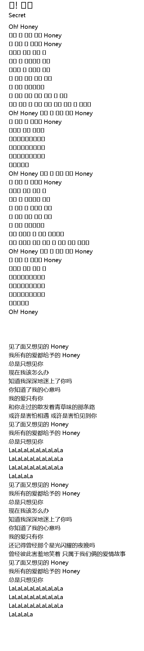 | [01:32.370] | Oh! Honey 보고 또 보고 싶은 Honey |