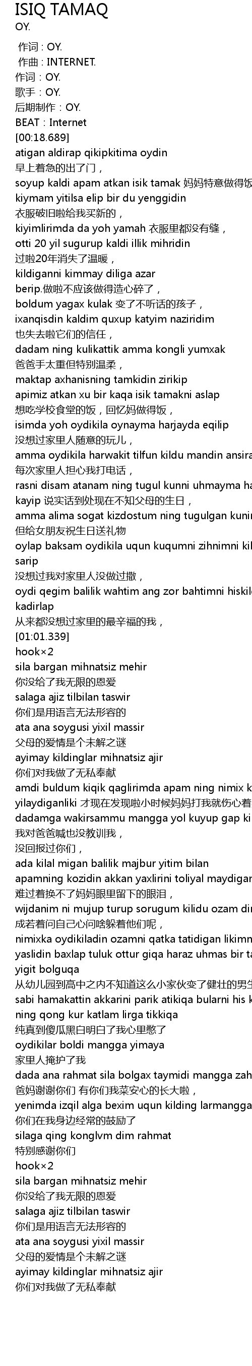 | [01:37.590] | apamning kozidin akkan yaxlirini toliyal maydigan likimni 难过着换不了妈妈眼里留下的眼泪, |