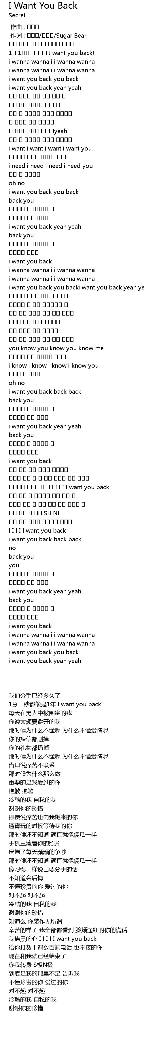 | [02:38.300] | 새까맣게 타버린 내 맘 I I I I I want you back |