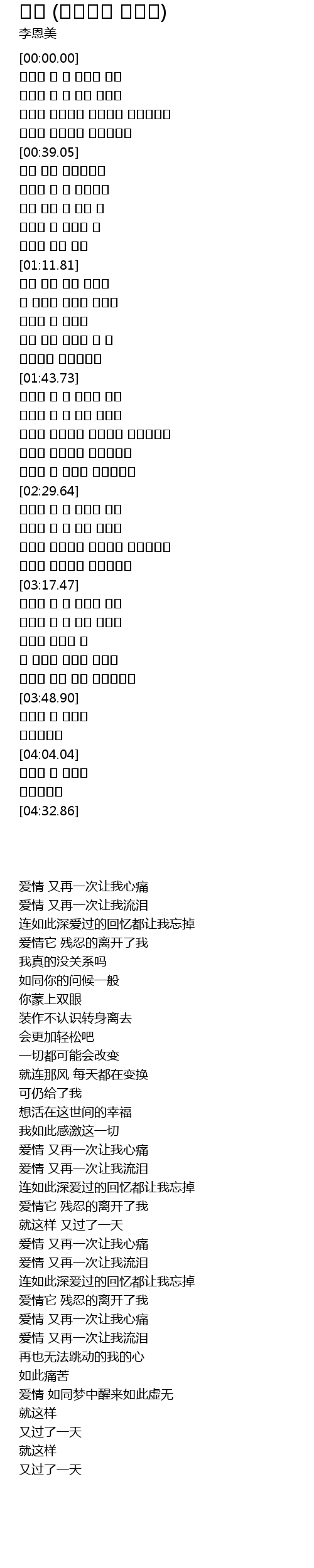 | [03:36.58] | 내 가슴은 이렇게 아픈데 |