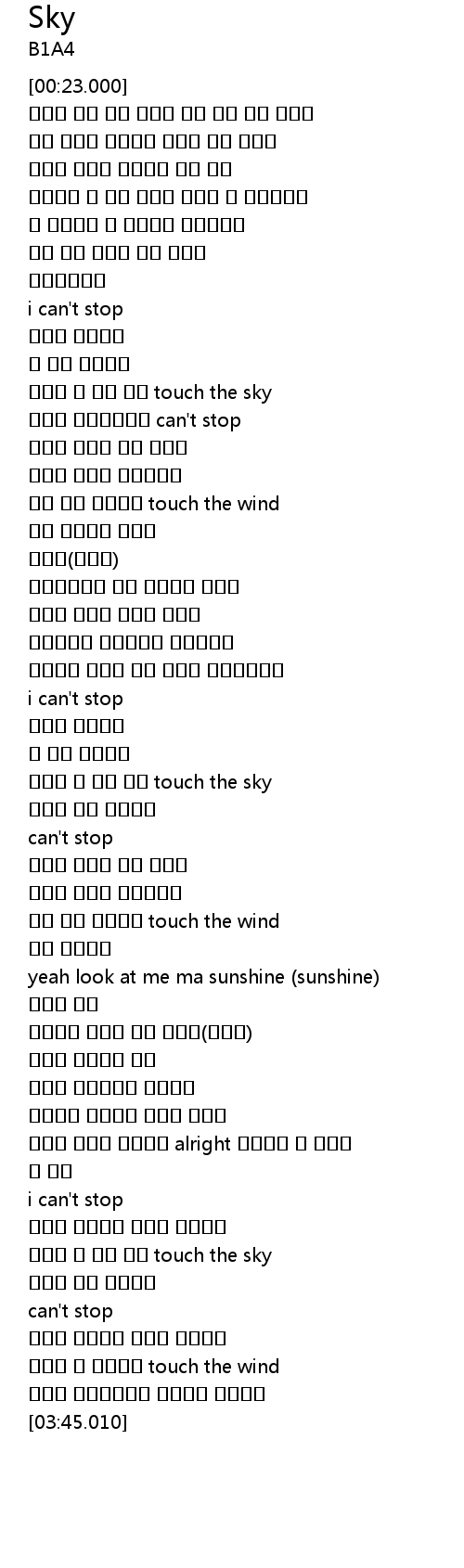| [03:18.410] | 언제나 난 너의 사랑 touch the sky |