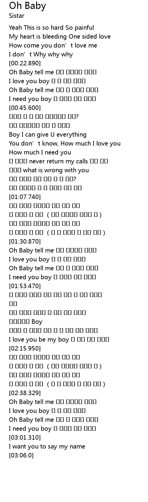 | [00:34.230] | Oh Baby tell me 그냥 내 곁에만 있어줘 |