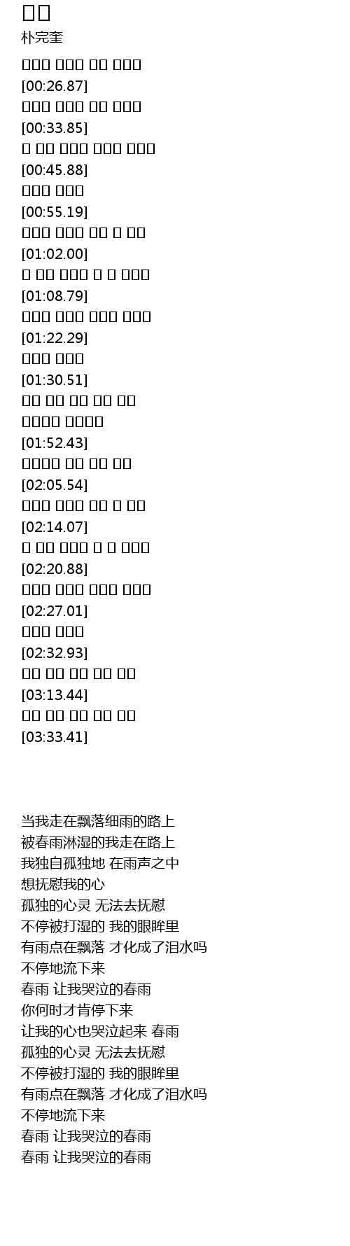 | [03:25.80] | 봄비 나를 울려 주는 봄비 |