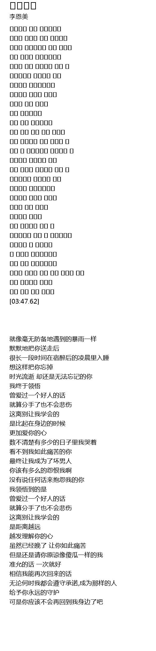 | [01:47.38] | 어떻게든 미워하려 했어 |