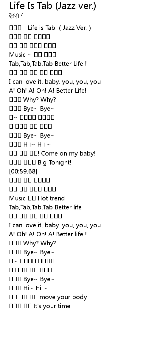 | [00:02.76] | 장재인 - Life is Tab (Jazz Ver.) |