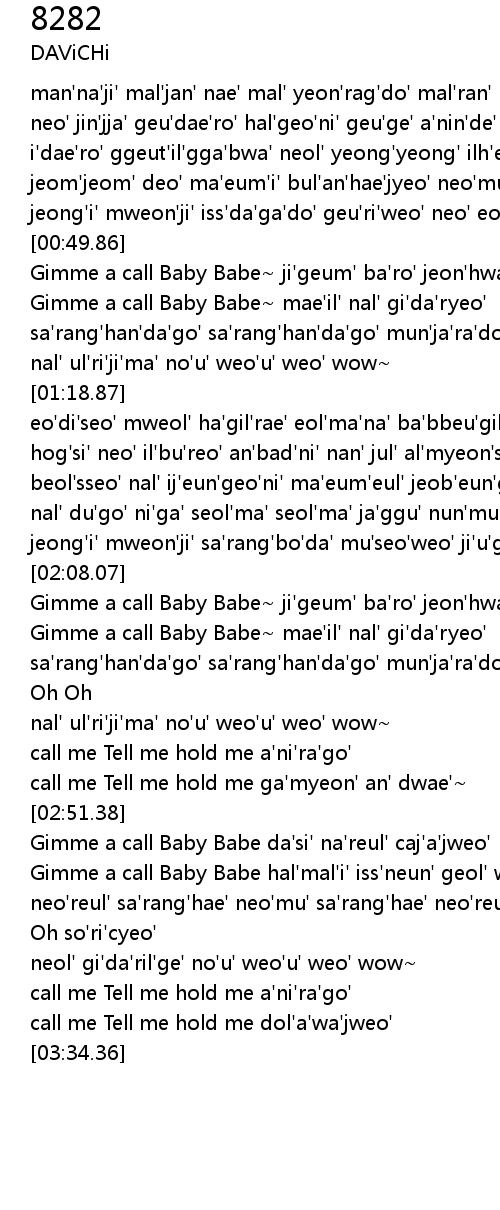Gimme a call Baby Babe hal'mal'i' iss'neun' geol' weo'u' weo' |
