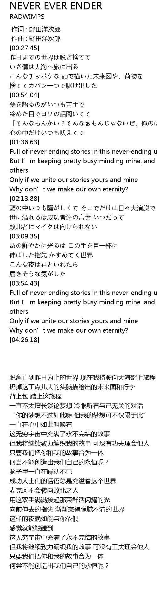 | [03:58.03] | Full of never ending stories in this never-ending universe |