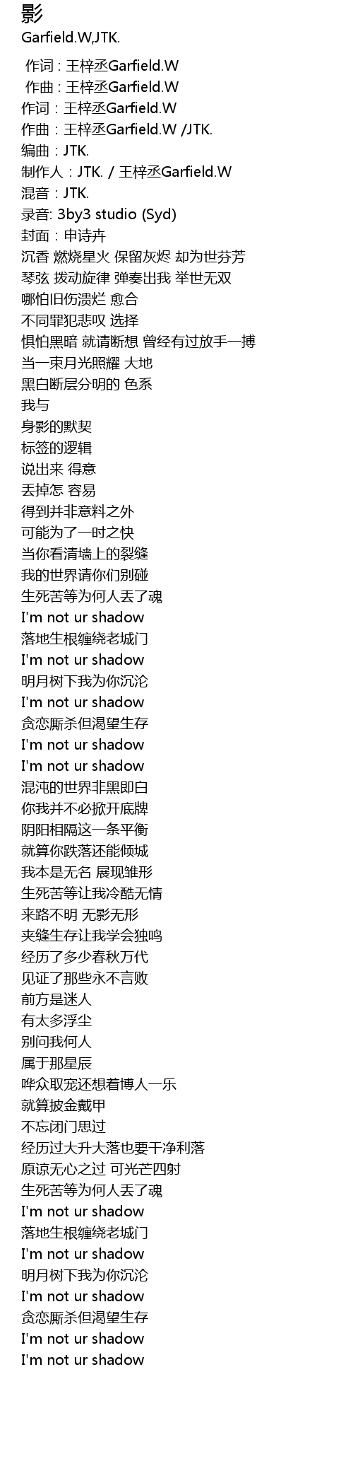 | [00:15.197] | zuò qǔ: wáng zǐ chéng Garfield. W JTK. |