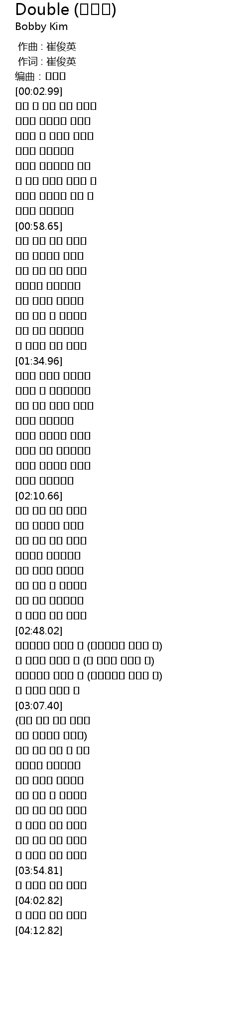 | [02:55.18] | 날 버리고 떠나지 마 (날 버리고 떠나지 마) |