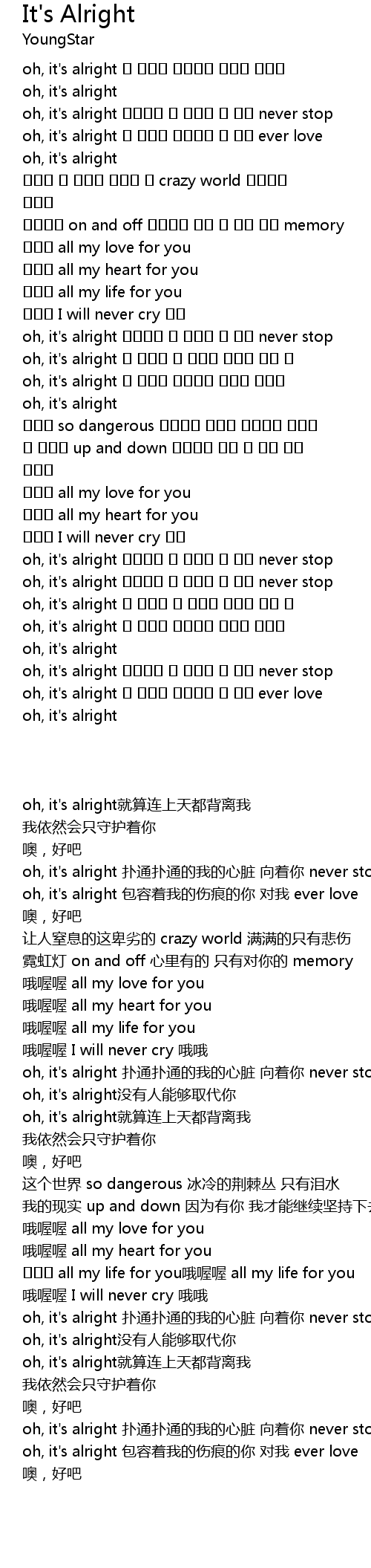 | [00:01.670] | oh, it's alright 저 하늘이 외면해도 너만을 지킬께 |
