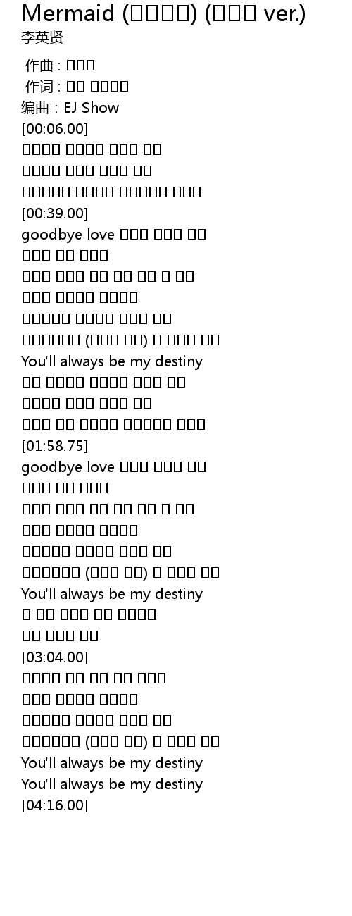 | [04:01.93] | You' ll always be my destiny |