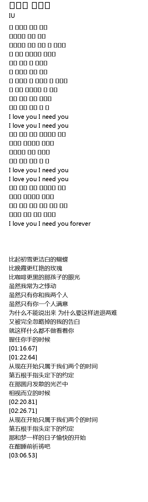 | [01:16.67] | I love you I need you |