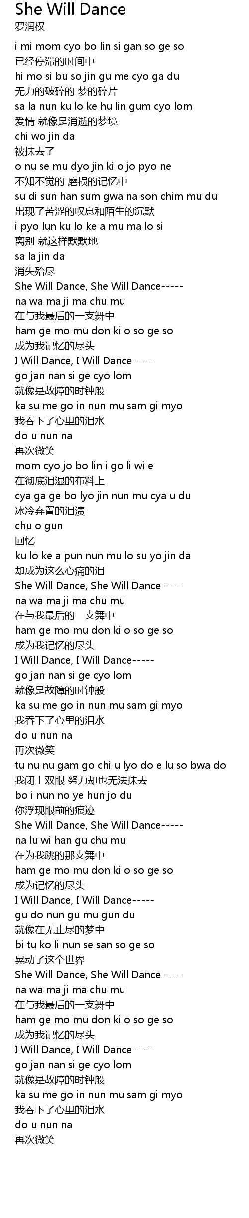 | She Will Dance, She Will Dance----- | |