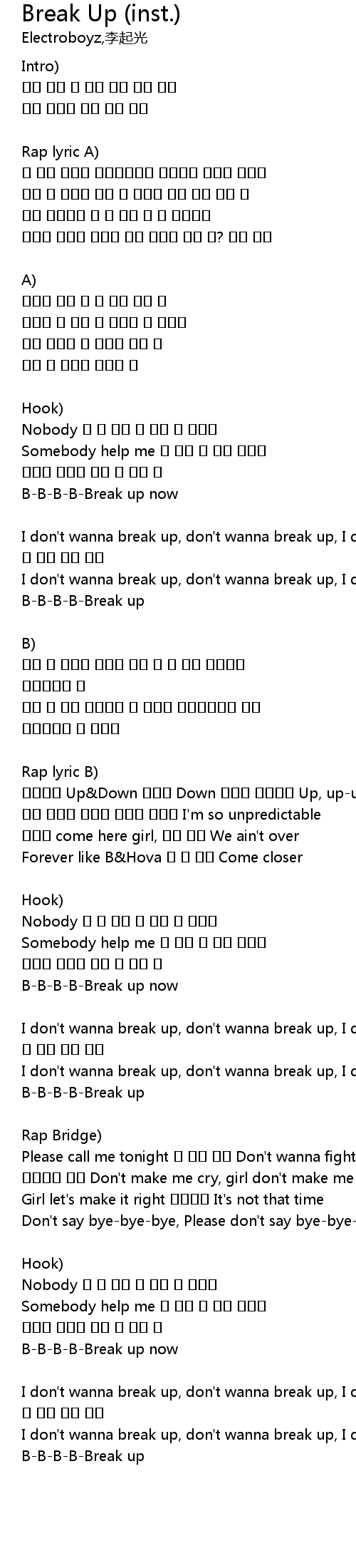 | I don't wanna break up, don't wanna break up, I don' wanna break up | |