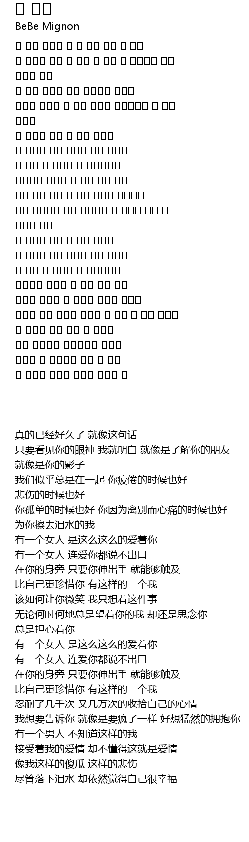 한 여자가 있어 사랑해 말도 못하는 |