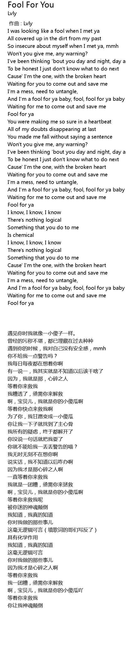 | [01:40.00] | And I'm a fool for ya baby, fool, fool for ya baby |