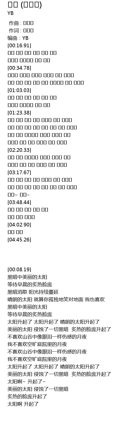 | [00:08.19] | 编曲:YB |
