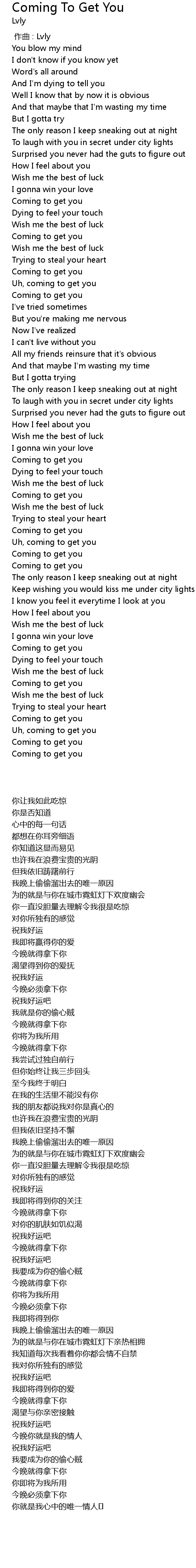 | [01:01.00] | Coming to get you |