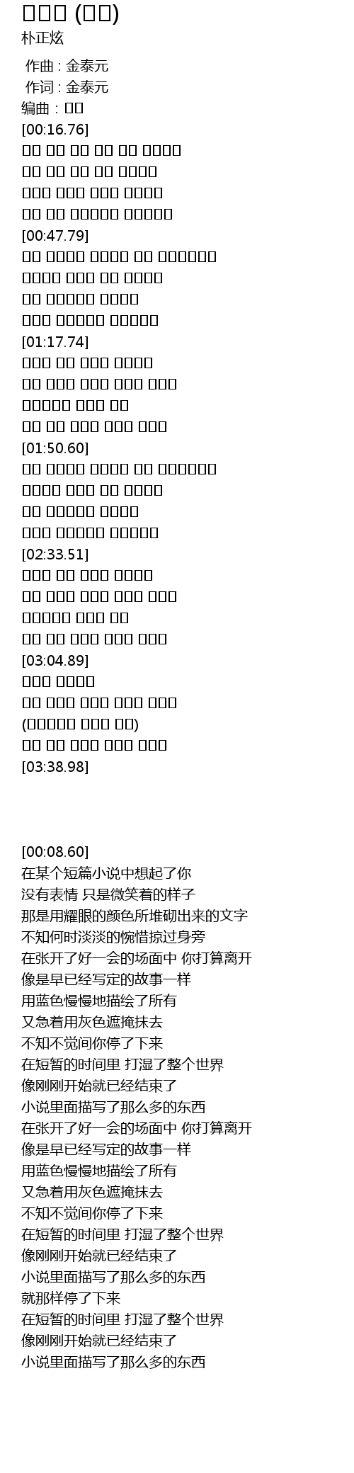 | [01:42.16] | 소설 속에 너무도 많은걸 적었네 |