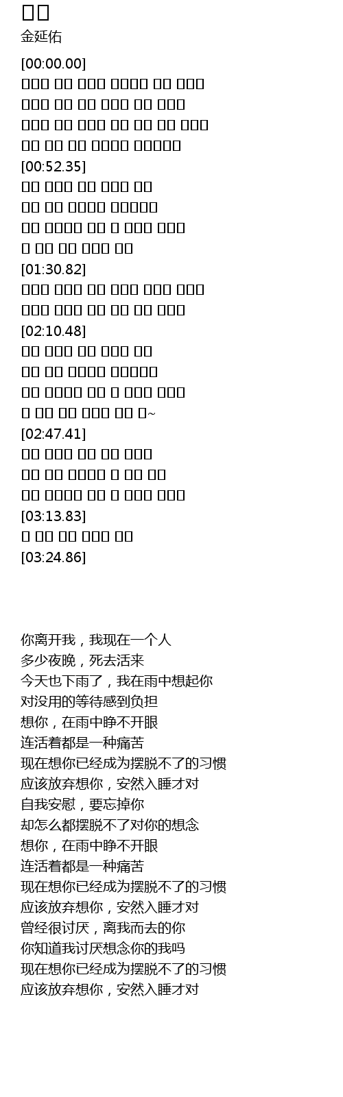 | [01:52.66] | 잊을수 있을것 같다 스스로 위안도 하지만 |