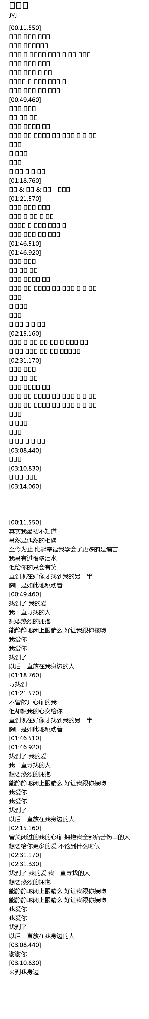 | [00:38.210] | 이제서야 내 반쪽을 찾았나 봐 |