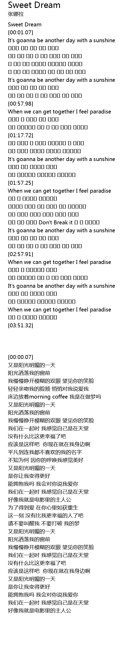 | [00:00.07] | Sweet Dream |