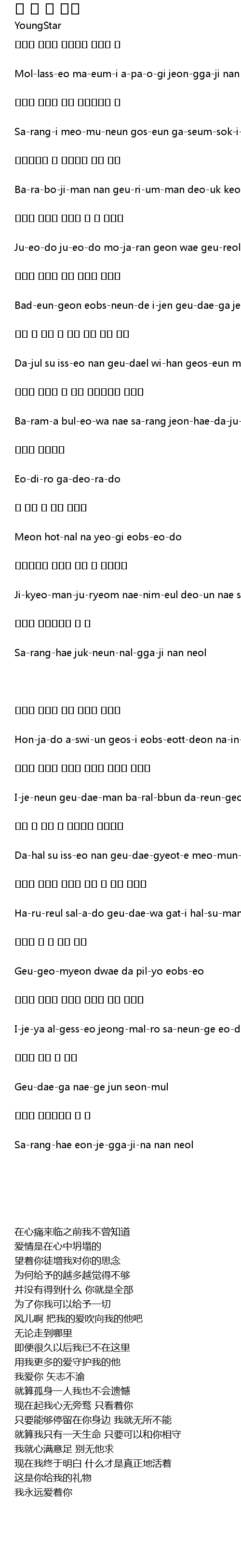 | 이제는 그대만 바랄뿐 다른건 하나도 안보여 | |