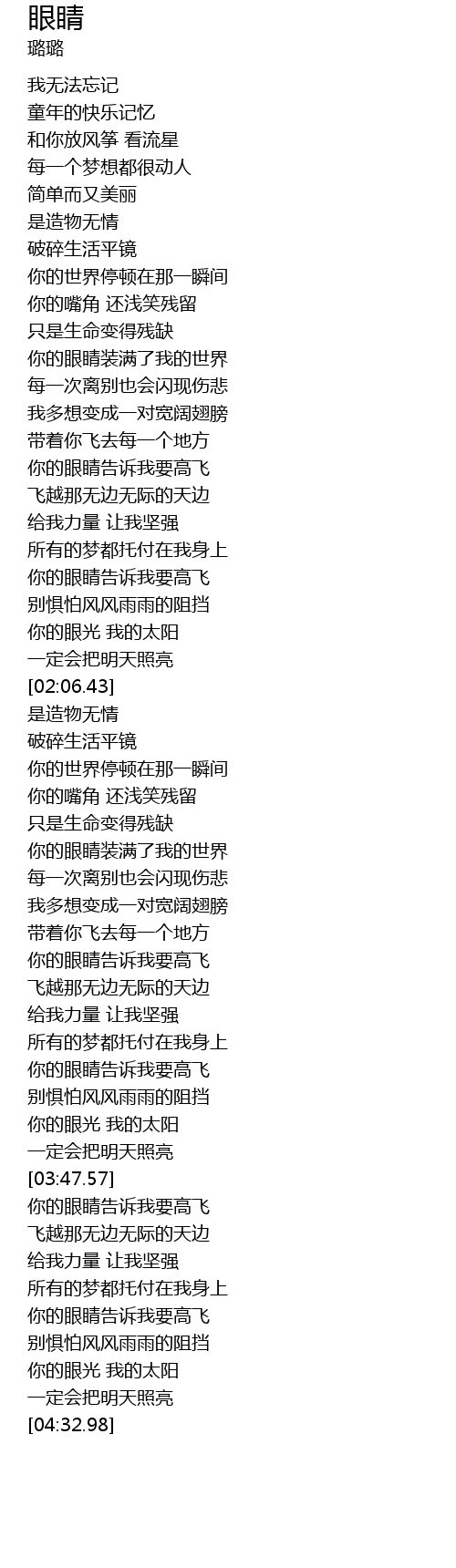 | [03:02.23] | 你的眼睛告诉我要高飞 |