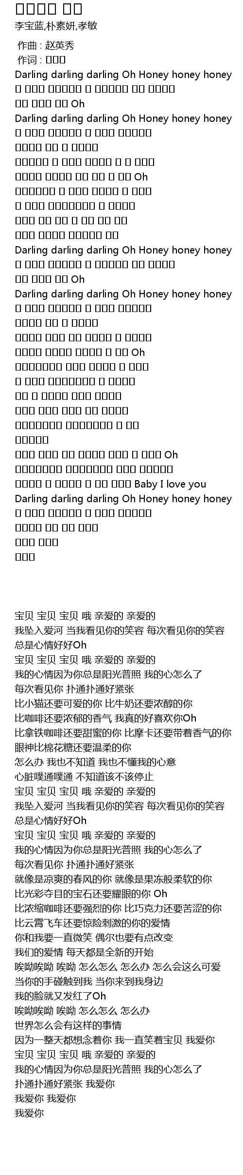 | [00:15.740] | Darling darling darling Oh Honey honey honey |