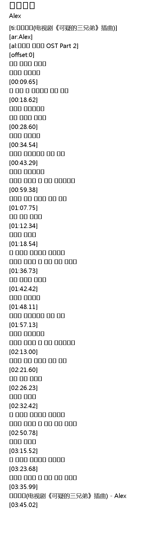 | [03:36.66] | 사랑살이(电视剧《可疑的三兄弟》插曲) - Alex |