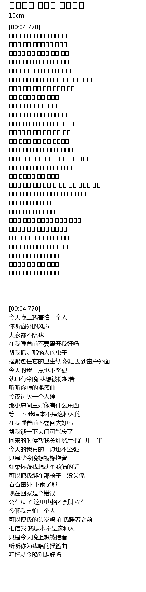 | [01:12.350] | 오늘밤은 혼자 잠들기 무서워요 |