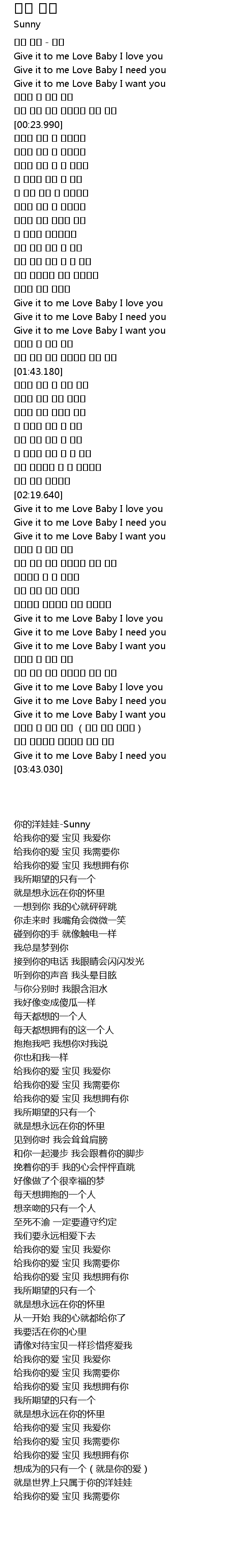 | [03:18.660] | Give it to me Love Baby I love you |