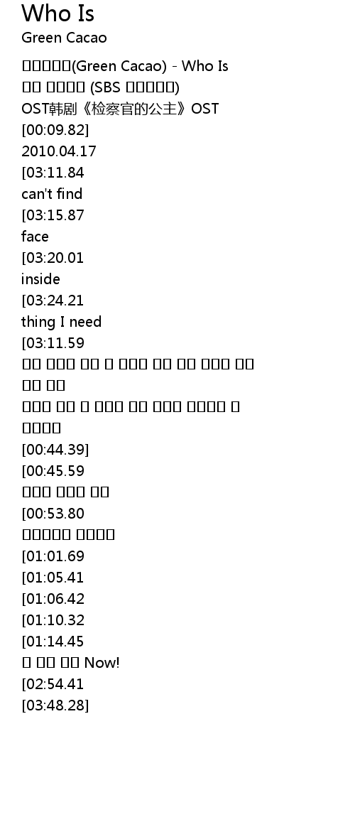 | [00:01.47] | 그린카카오(Green Cacao) - Who Is |