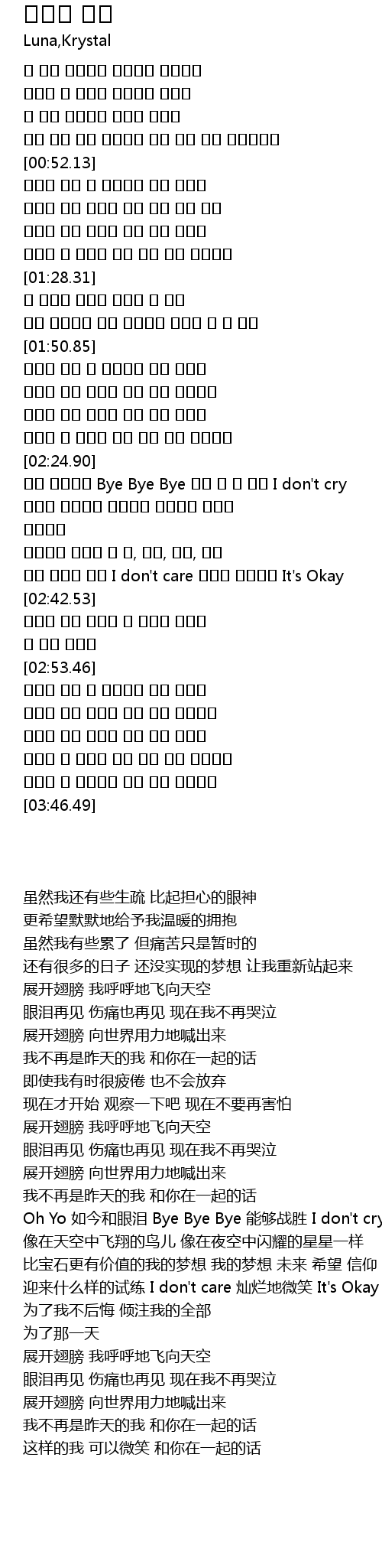 이제 눈물들은 Bye Bye Bye 이겨 낼 수 있어 I don't cry |
