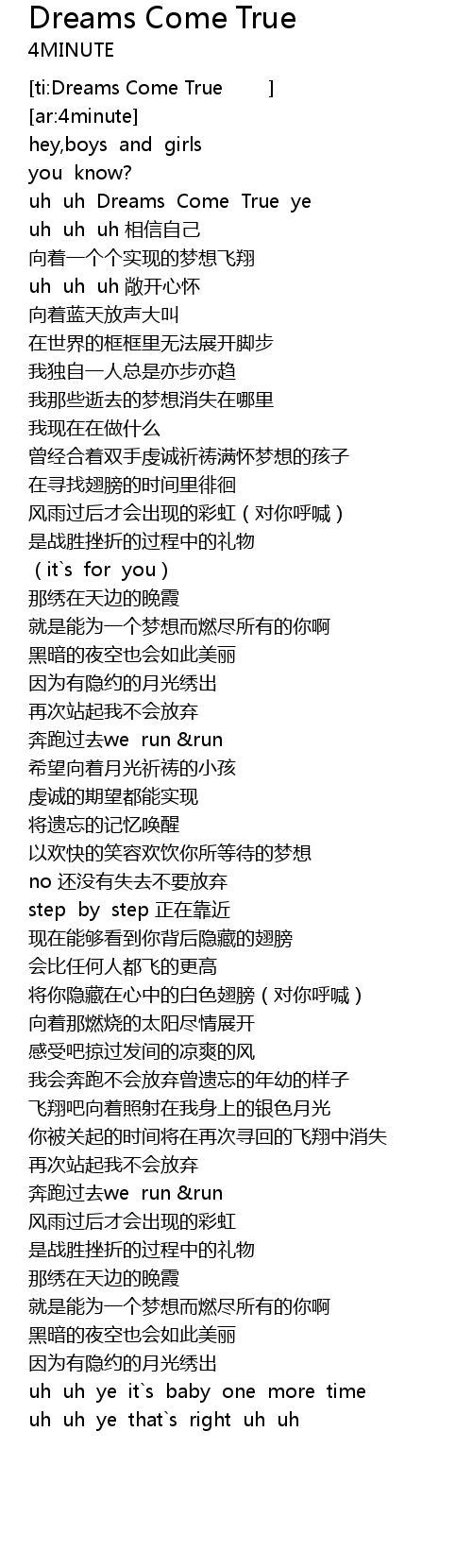 | [ti:Dreams Come True ] | |