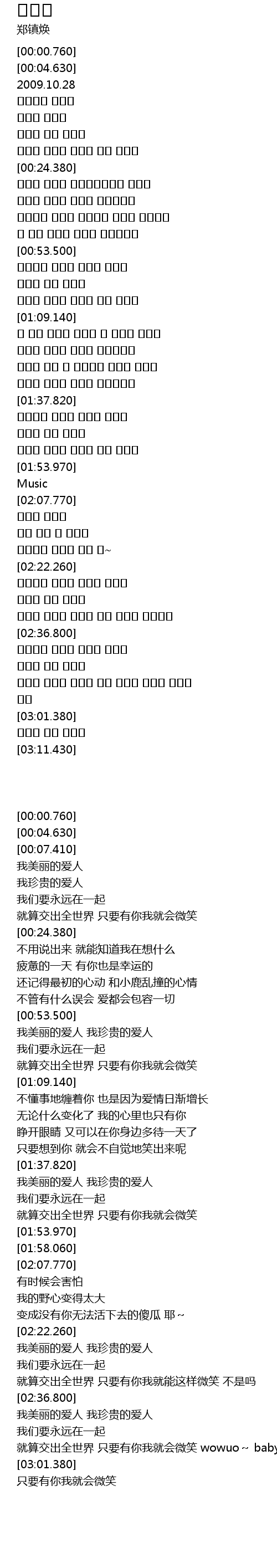 | [01:38.820] | 아름다운 내사랑 소중한 내사랑 |
