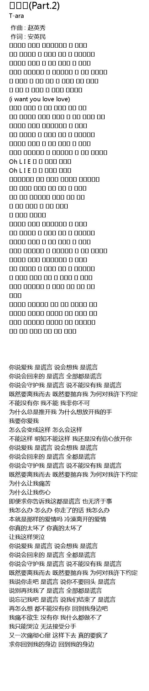떠나가란 거짓말 돌아보지말란 내 거짓말 |