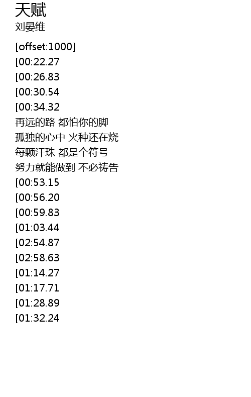 | [03:13.48][02:58.63][01:25.23][01:10.37] | 陪你出发的朋友 名字叫天赋 |