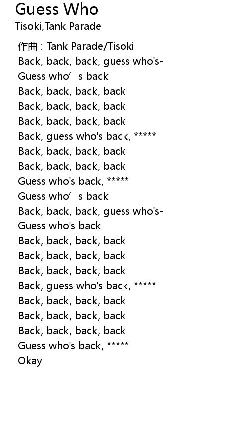 | [00:00.000] | 作曲 : Tank Parade/Tisoki |