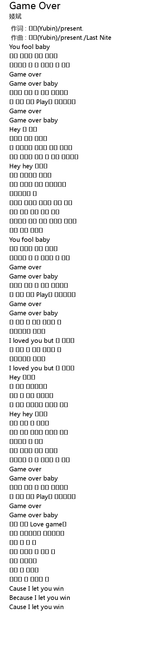 | [00:20.40] | Game over baby |