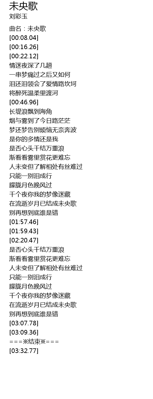 | [01:46.31] | 在流逝岁月已结成未央歌 |