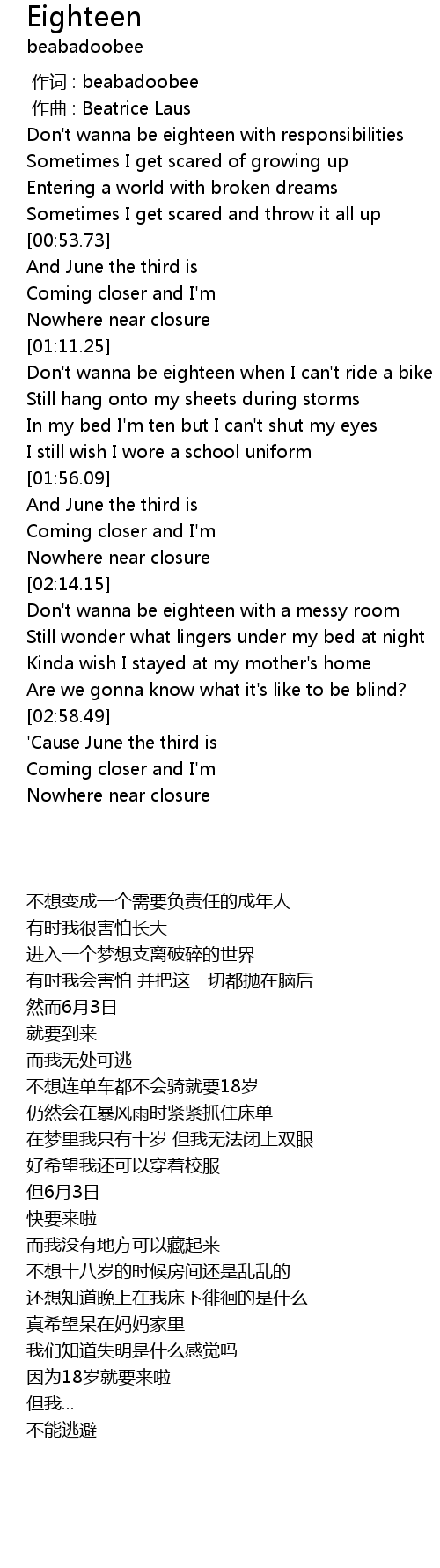 | [00:12.82] | Don't wanna be eighteen with responsibilities |