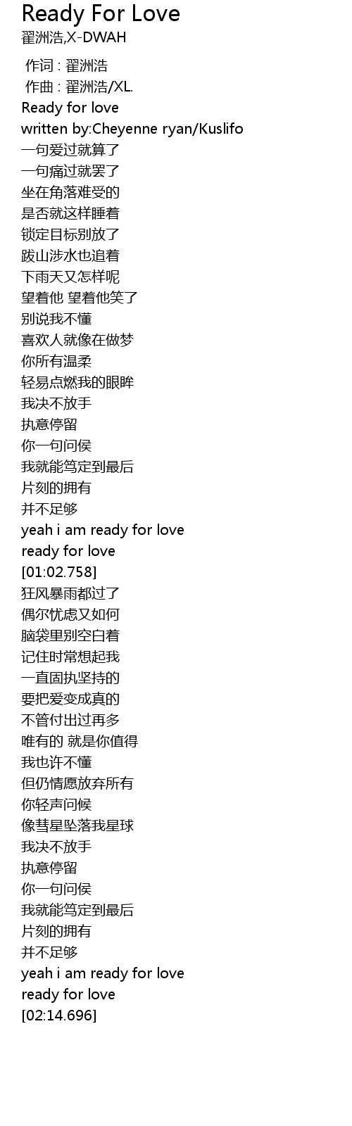 | [00:57.524] | ready for love |
