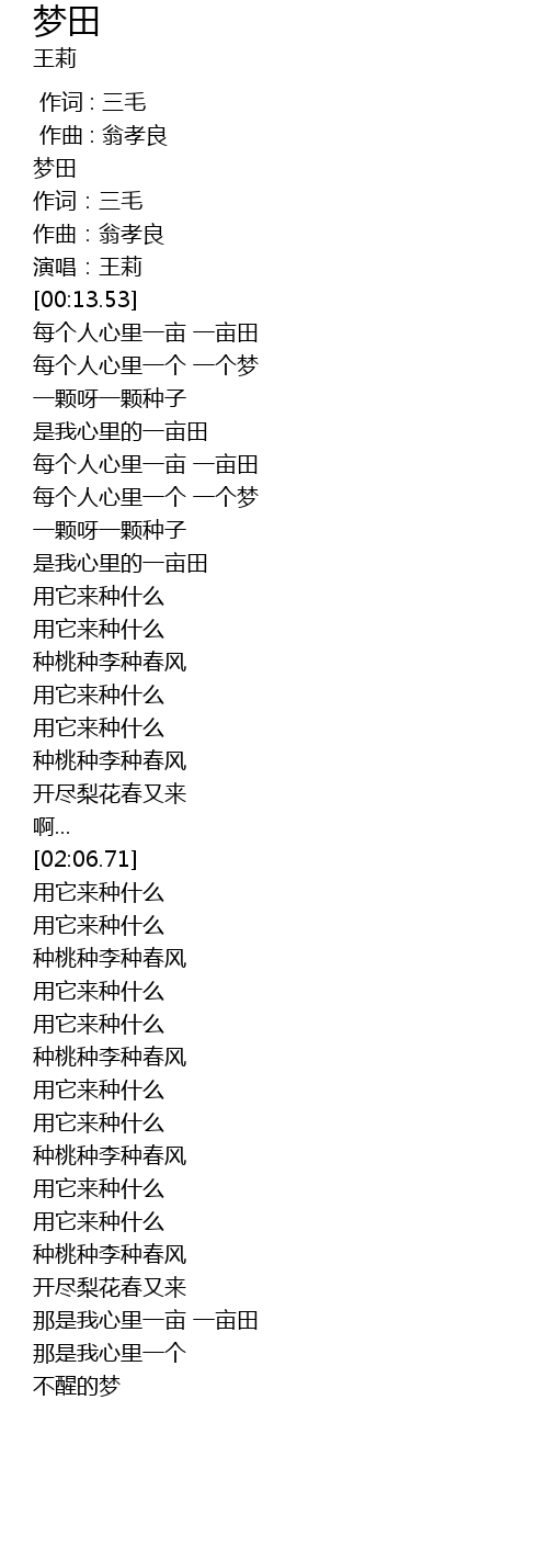 | [00:15.50] | 每个人心里一亩 一亩田 |