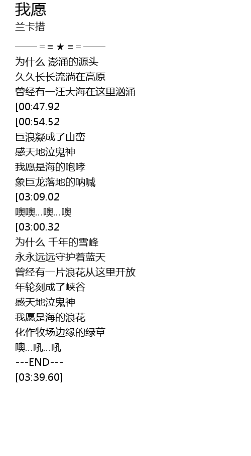 | [02:30.32] | 我愿是海的浪花 |