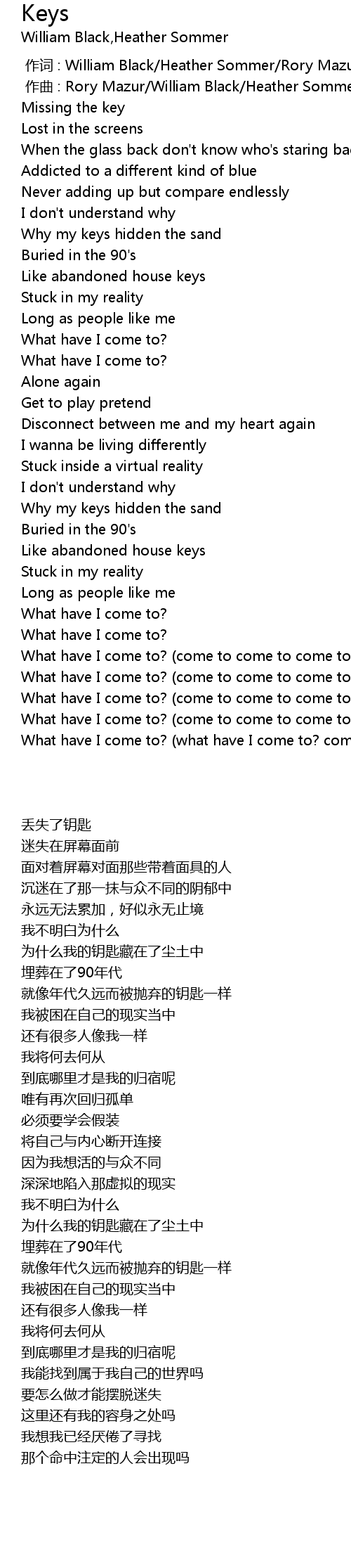 | [00:00.000] | 作词 : William Black/Heather Sommer/Rory Mazur |