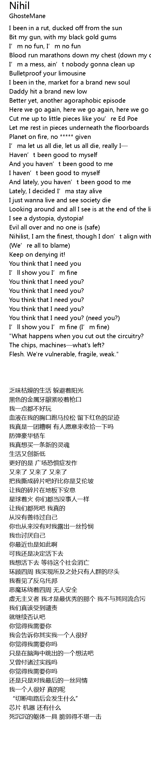 | [01:21.22] | Nihilist, I am the finest, though I don’t align with it |
